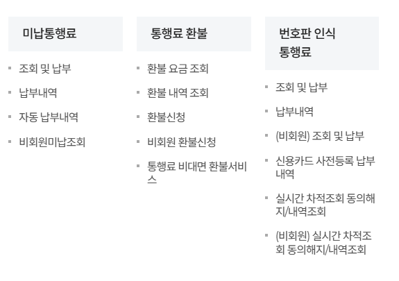 고속도로 통행료 홈페이지나 앱에서 신용카드나 계좌를 등록하면 미납 발생 시 자동으로 결제돼요. 미납 걱정 없이 편리하게 이용할 수 있어요.