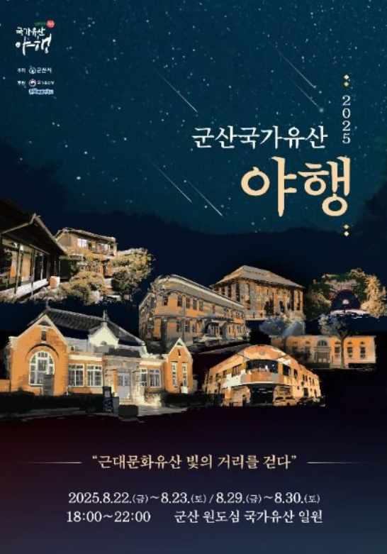 야경(夜景), 야로(夜路), 야사(夜史), 야화(夜畵), 야설(夜說), 야식(夜食), 야숙(夜宿), 야시(夜市)... 이렇게 8가지 테마로 구성된 특별한 밤 여행이에요. 군산의 근대문화유산들이 밤에 특별한 조명을 받아 환상적인 분위기를 연출하죠. 조선은행 군산지점, 신흥동 일본식 가옥, 군산세관 같은 역사적인 건물들이 밤하늘 아래에서 새로운 모습을 보여준답니다.
