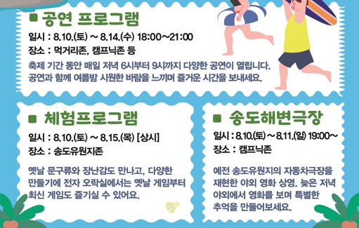 그럼 모두 올여름 송도해변축제에서 만나요! 혹시 저랑 마주치게 되면 인사해 주세요. 아마 인공백사장 파라솔 아래에서 아이들 모래놀이 하는 걸 지켜보고 있을 거예요. 😊