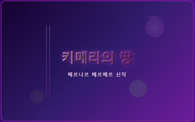 함께 이야기해요! 베르베르의 작품 세계에 대한 여러분의 생각이나 경험담을 댓글로 남겨주세요. 특히 이번 '키메라의 땅'에서 가장 관심 있는 부분이나 기대하는 점들을 들려주시면 정말 좋겠어요.