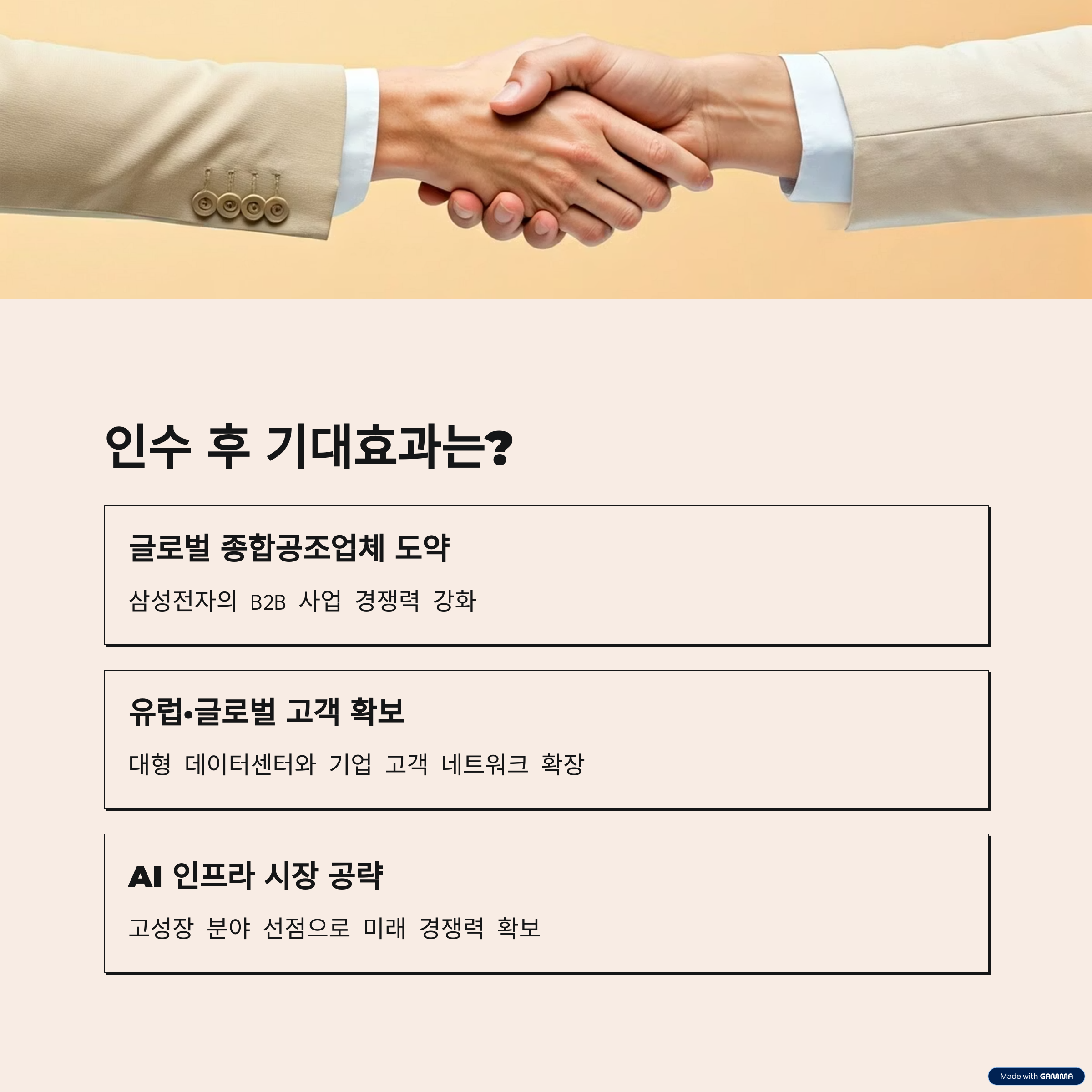 인수 후 기대되는 주요 효과를 정리해보면 다음과 같습니다: