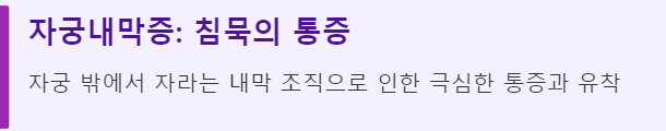 - 수술적 치료: 병변 절제술, 심한 경우 자궁 적출술(가임 계획 없는 경우)