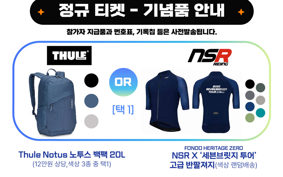 고급 기념품(NSR 져지 또는 가방), 완주 메달, 번호표, 기록칩이 모두 포함돼요. 그리고 행사 당일에는 광안대교 상판 무료 개방, BMX 공연, 미슐랭 셰프 푸드트럭 등의 부대행사도 즐길 수 있어요.
