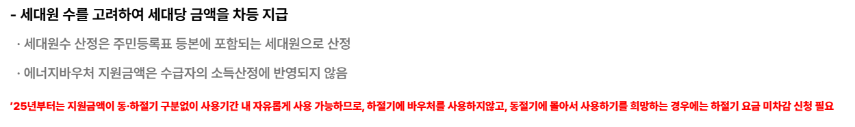 • 소득 산정 제외: 에너지바우처 지원금은 수급자의 소득에 포함되지 않아요