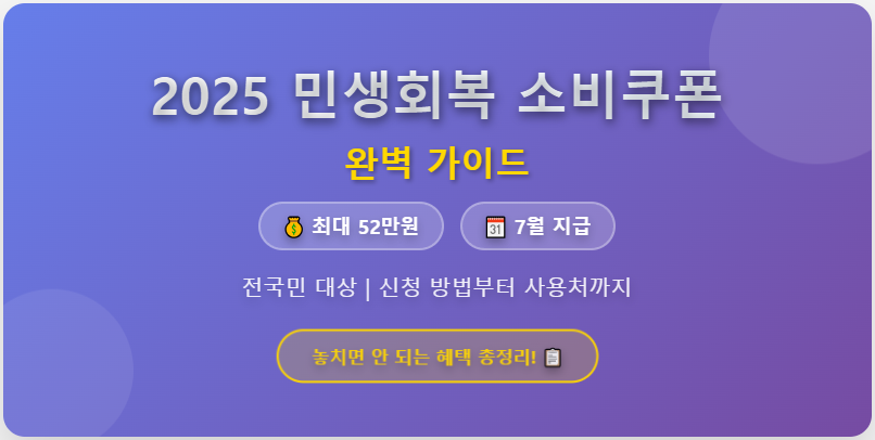 | 2025 민생회복 소비쿠폰 사용처 완벽 가이드 (1) | 2025.07.22 |