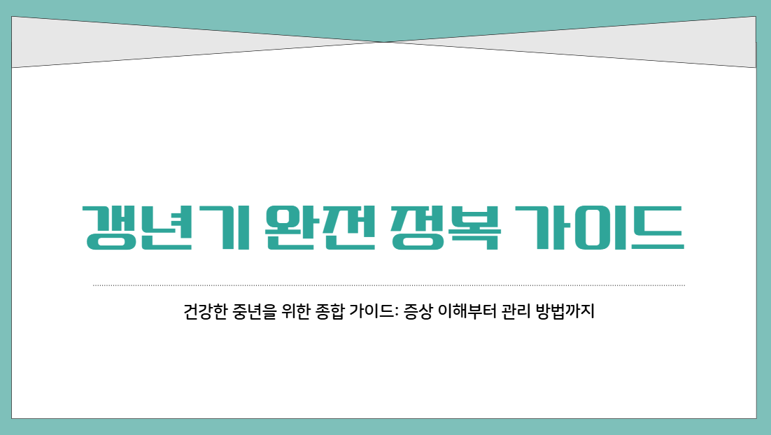 갱년기가 찾아와도 당황하지 마세요! 자연스러운 인생의 한 과정을 현명하게 관리하는 방법, 지금 알아보세요.